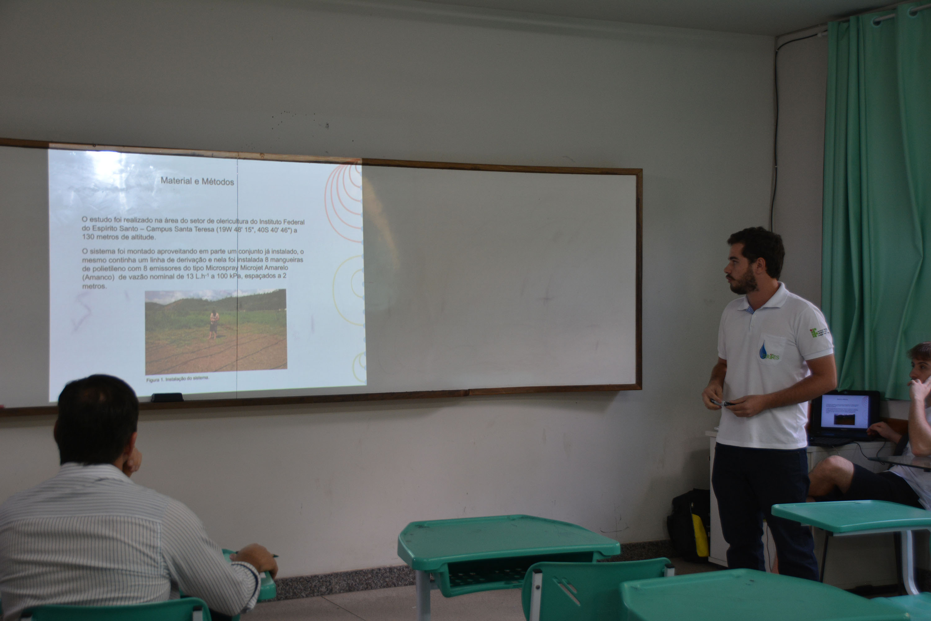 Os estudantes criaram um sistema de gotejamento no subsolo para estádios de futebol, que seria movido a partir da energia de cadeiras adaptadas. “O ato de sentar e levantar das cadeiras gera uma energia capaz de manter o sistema”, explicou o estudante Eric Bernardes. De acordo com ele, a irrigação feita por meio de aspersores desperdiça em torno de 50% de água, que acaba evaporando, sendo levada pelo vento ou virando umidade.